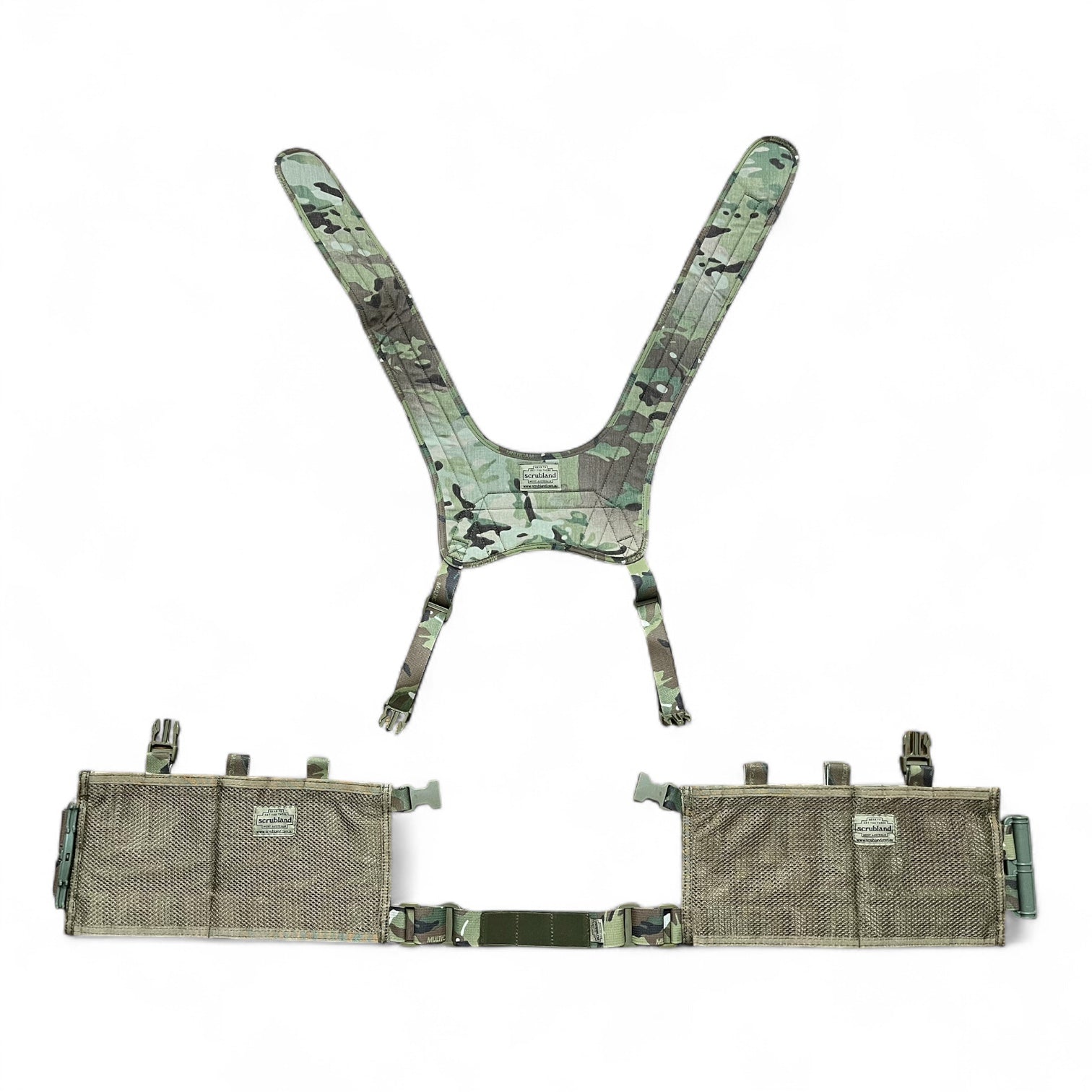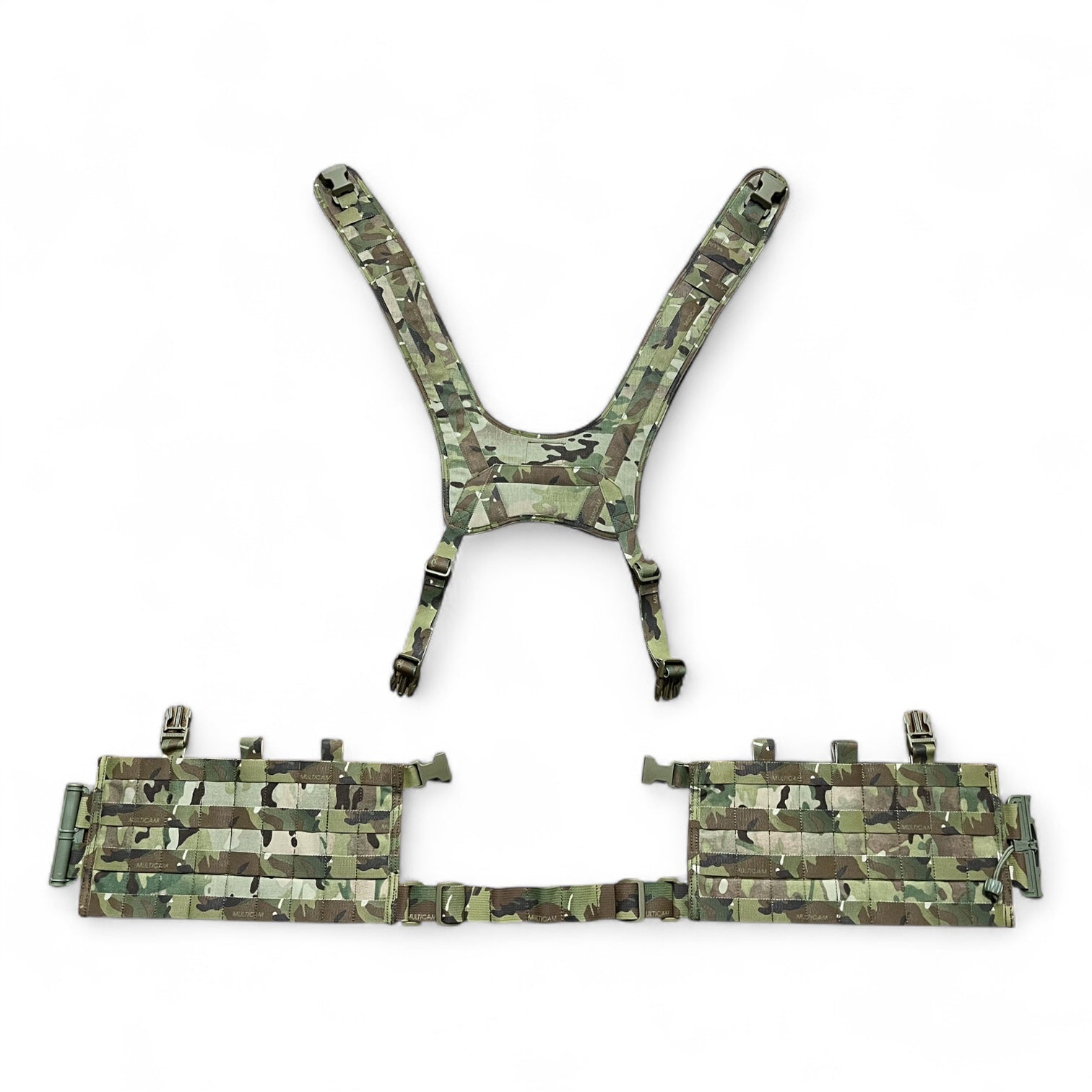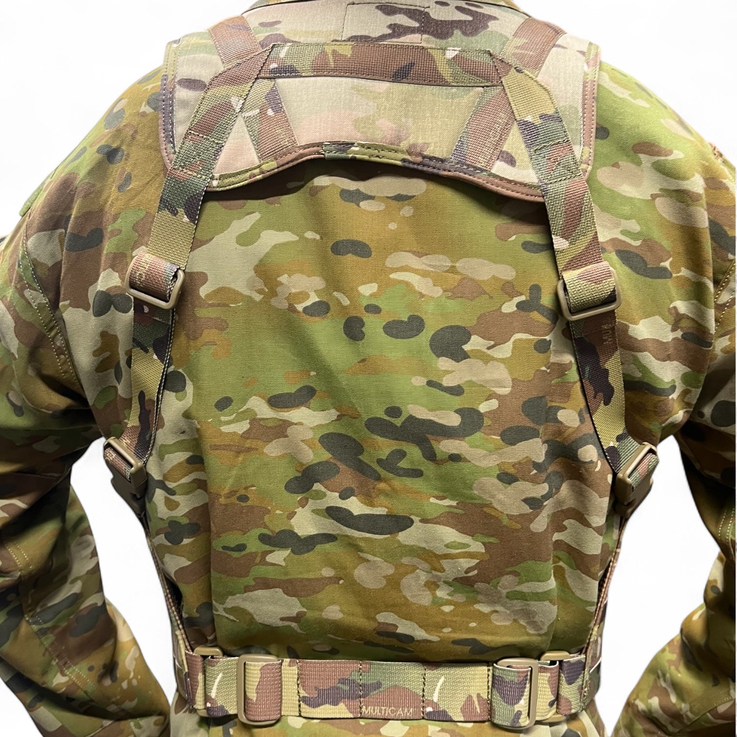 The patrol rig is supported by a padded, H-harness, specifically chosen for its ability to distribute heavy loads evenly across your shoulders, ideal for long patrols, reconnaissance tasks, or multi-day movements.